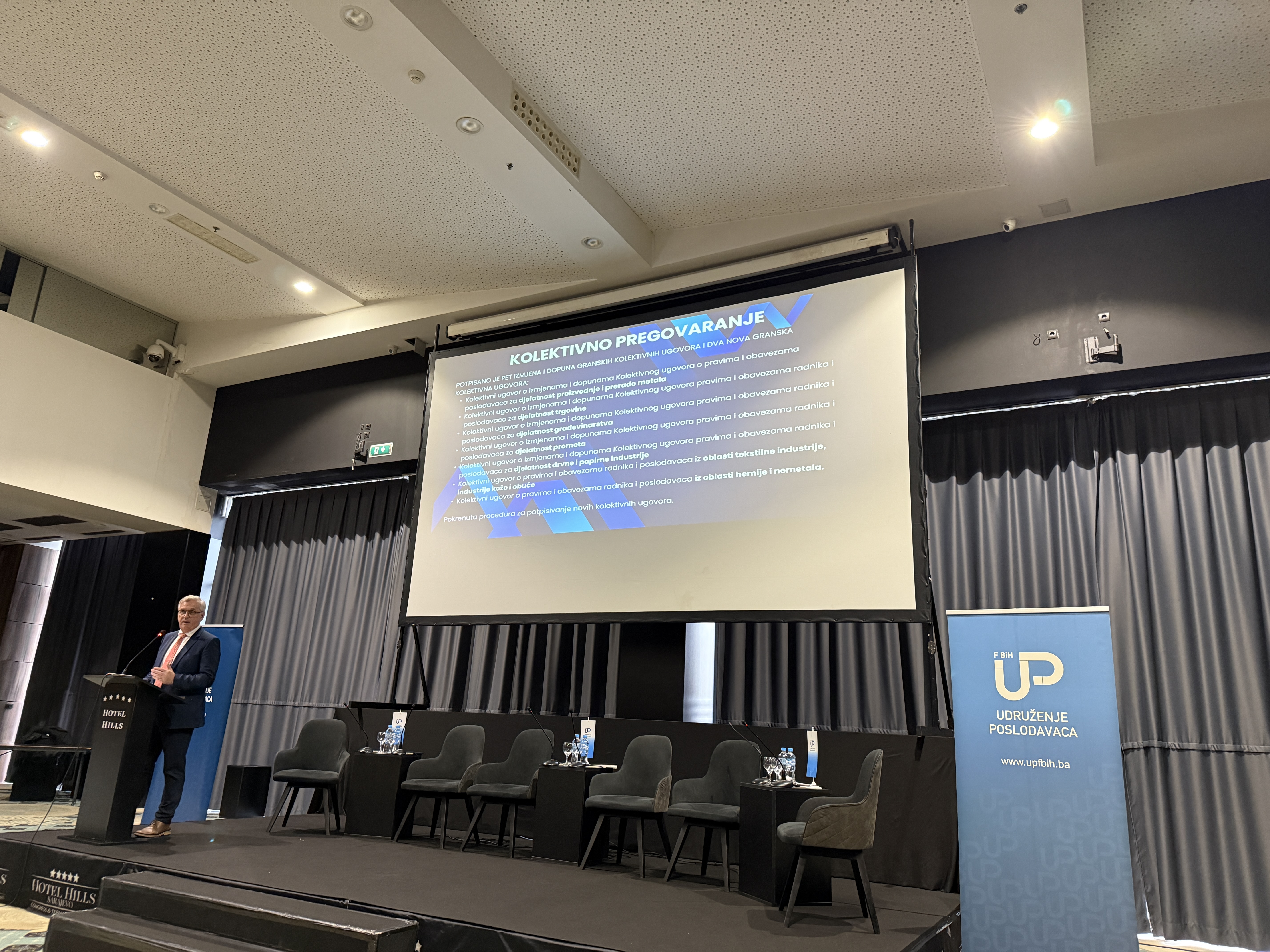 Na Ilidži je danas, u organizaciji Udruženja poslodavaca u Federaciji BiH, održana poslovna konferencija na temu: “Poslovno okruženje u FBiH i tržište BiH i EU, stanje, prilike i perspektive”, kojoj je u ime Saveza samostalnih sindikata BiH prisustvovao predsjednik SUFBiH-a, Samir Kurtović.