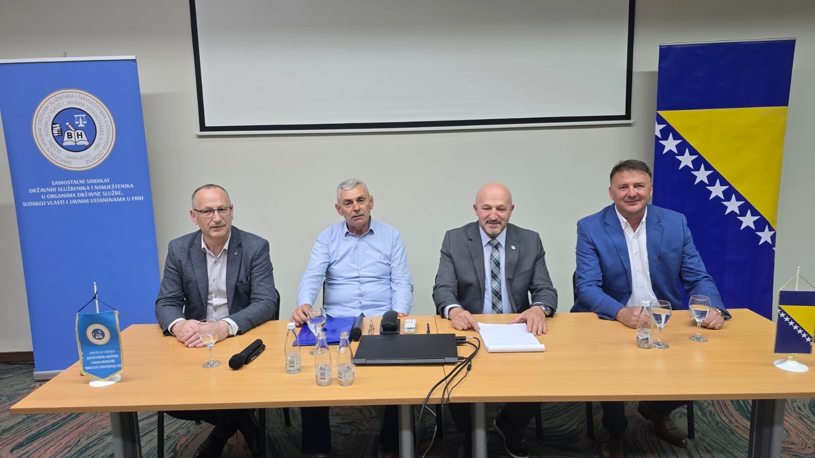 Ispred Samostalnog sindikata državnih službenika i namještenika u organima državne službe, sudskoj vlasti i javnim ustanovama u Federaciji BiH predavač je bio predsjednik sindikata Samir Kurtović.
